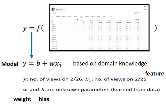 未來點閱次數的函式 ,是前一天的點閱次數乘上 再加上 。猜測往往是對問題本質上的了解,是 domain knowledge