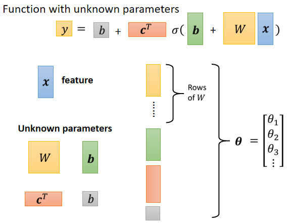- 跟 是未知的參數,透過準備資料找出最適合的參數