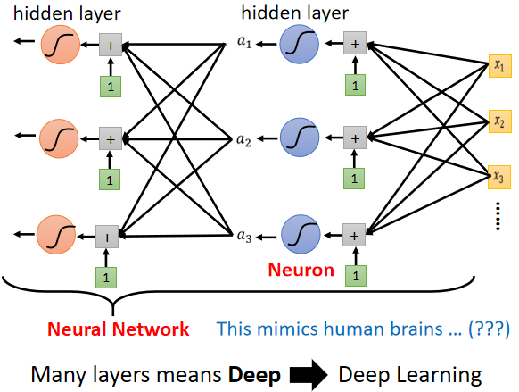 事實上,sigmoid 的個數就是神經網絡中的一層的 neuron 節點數(使用幾個 sigmoid 是超參數)