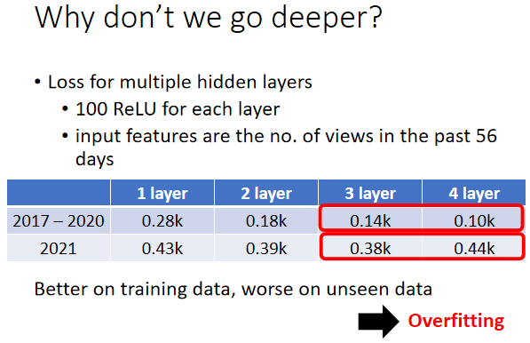 Overfitting:在訓練資料上有變好,但是在沒看過的資料上沒有變好