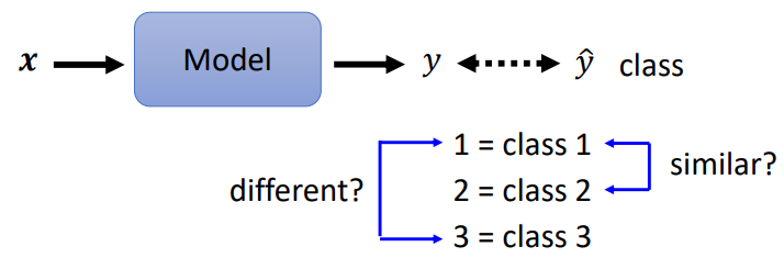 3 個 class 若分別設為1, 2, 3,背後隱含 class 1 跟 class 2 比較相關,class 1 跟 class 3 比較不相關