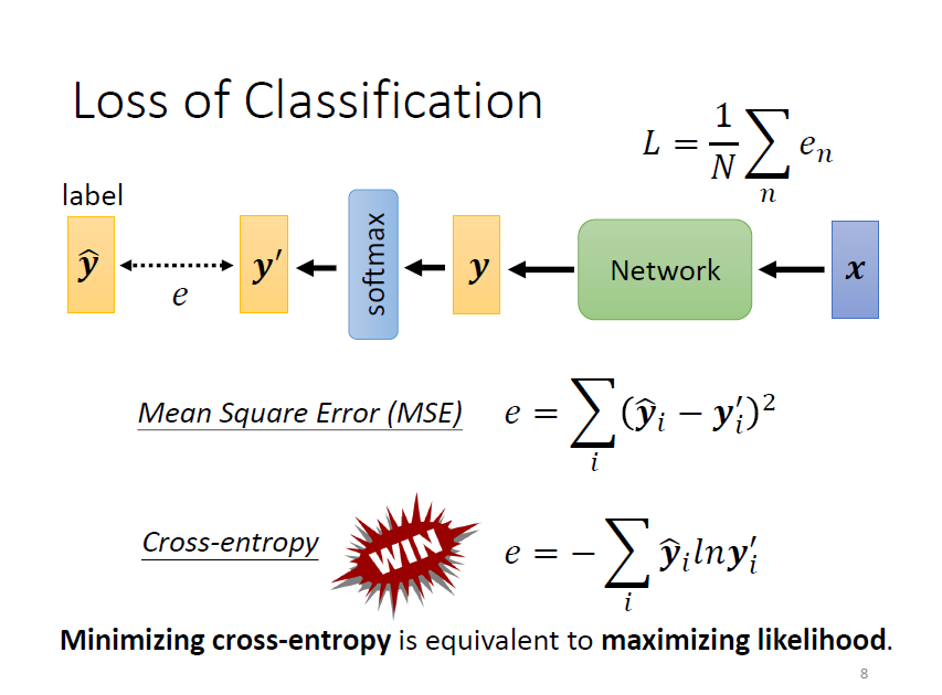 選擇 cross-entropy,因為比 MSE 更加適用於分類問題!