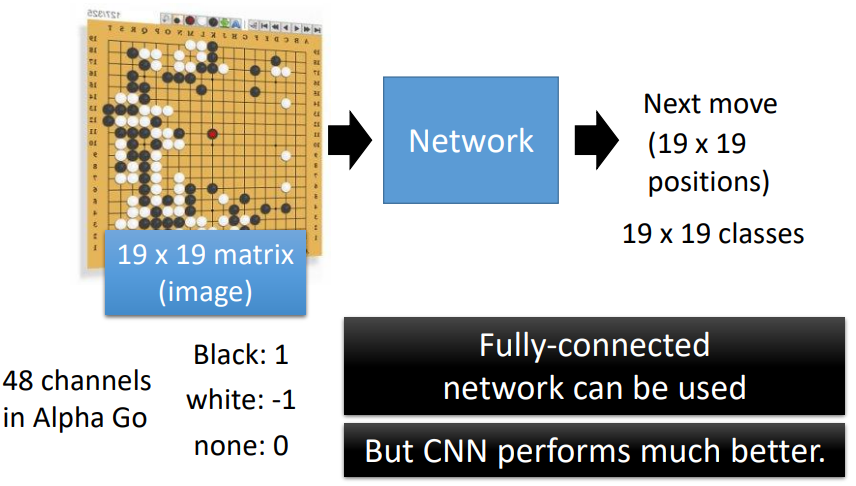 把棋盤看成 19×1919\times19 的圖片,用 48 個 channel 來描述