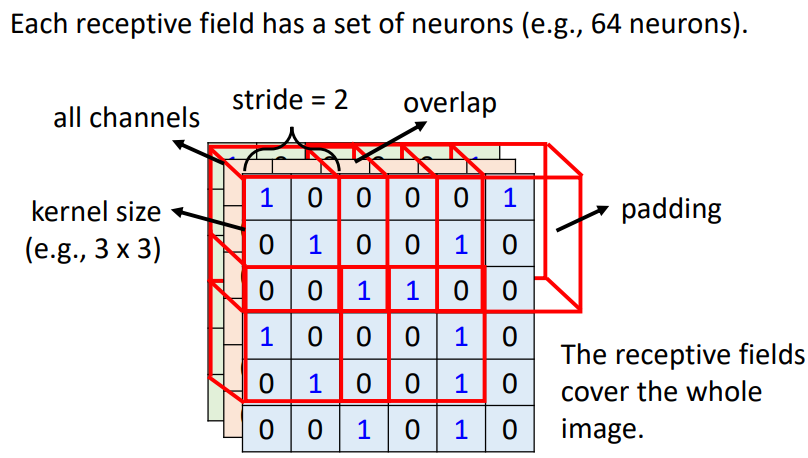 → 一般希望 receptive field 之間有重疊,避免交界處的 pattern 被忽略