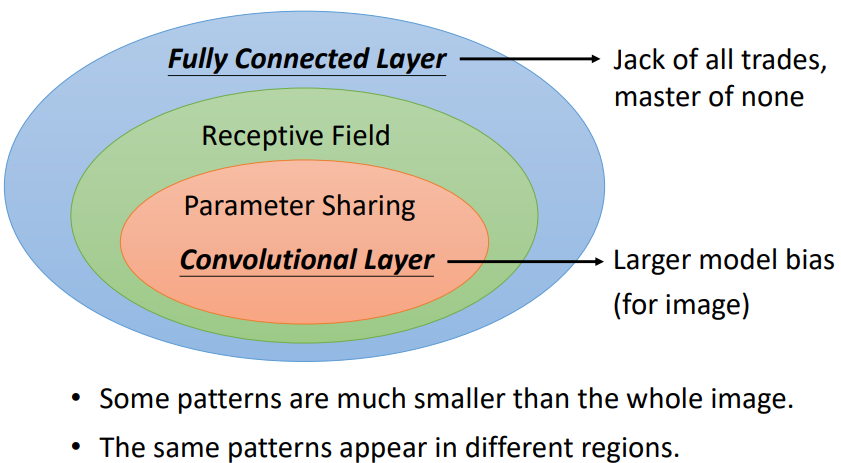 考慮到影像辨識問題本身的特性,其實並不一定需要 fully connected,不需要每一個 neuron 與 input 的每一個 dimension 都有一個 weight
