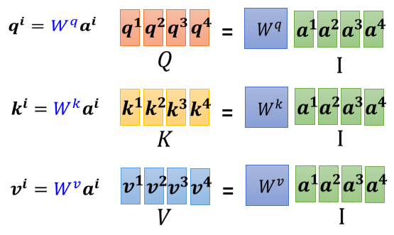 - Self-attention 四個 vector 是平行產生的,不需等誰先運算完才把其他運算出來