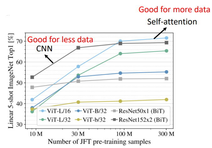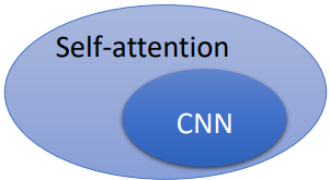CNN 就是 self-attention 的特例,可說是更 flexible 的 CNN,Self-attention 只要設定合適的參數,它可以做到跟 CNN 一模一樣的事情。根據 An Image is Worth 16x16 Words: Transformers for Image Recognition at Scale 這篇 paper 顯示的結果,給出以下解釋: