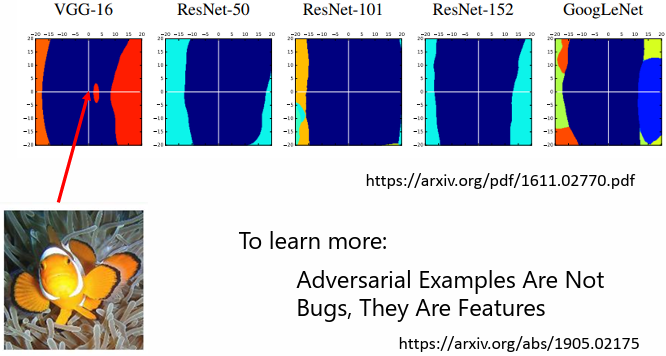 根據 Delving into transferable adversarial examples and black-box attacks 這篇論文的研究發現,深藍色的區域是可以被辨識成小丑魚的範圍,可以看出: