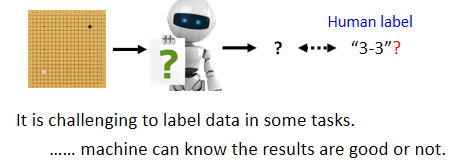例如叫機器學習下圍棋,最好的下一步可能人類根本不知道。在不知道正確答案是什麽的情況下,就可以使用 RL