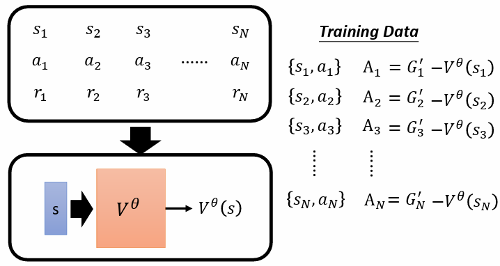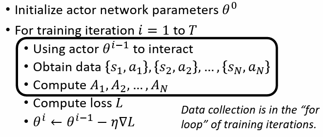 用參數為 的 actor 蒐集資料,並以此資料計算 ,再計算 loss ,做 gradient descent 更新參數
