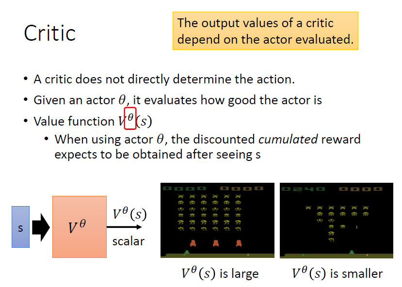 critic 做的事就是在只看到當前 而尚未完成這局遊戲前,就得到對參數為 的 actor 的評價