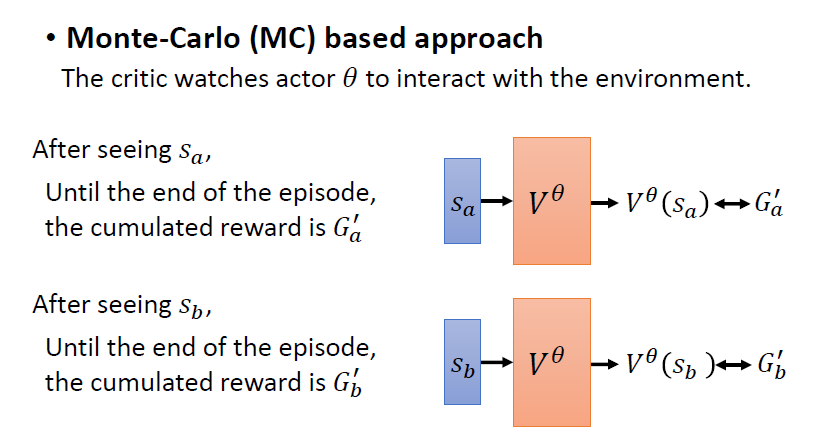兩種方法訓練 critic:Monte Carlo 及 Temporal-Difference