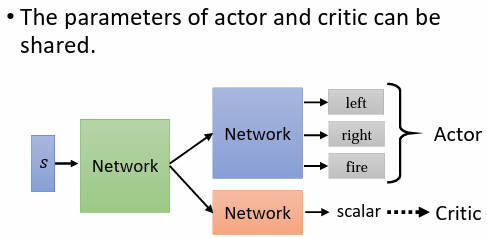 可將 actor 及 critic 兩個 network,共用部分的 network