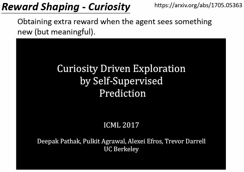 reward shaping 的其中一種做法:Curiosity based reward shaping