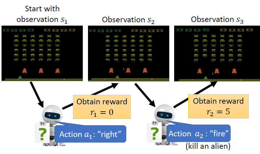 定義 reward function 會考慮 action 和 observation 兩者,把所有的 相加得到 ,即是要去最大化的對象