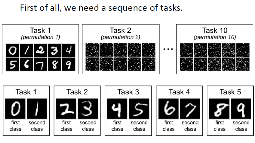 在 LLL 中,讓機器不斷學習”不同的任務”,實際上是學習類似的任務但”不同的 domain”,只是習慣當成不同的任務