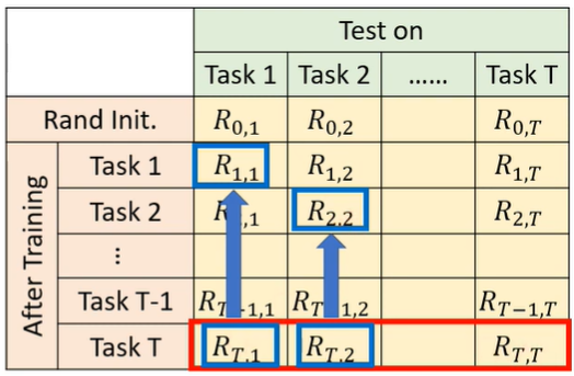 Ri,jR_{i,j} 表示學完任務 ii,在任務 jj 上的表現